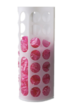 Need to store wrapping paper so that won't take up valuable floor space? Try using this plastic bag dispenser from Ikea to hold wrapping paper rolls in a closet. Just affix it to the wall and you are ready to start wrapping.