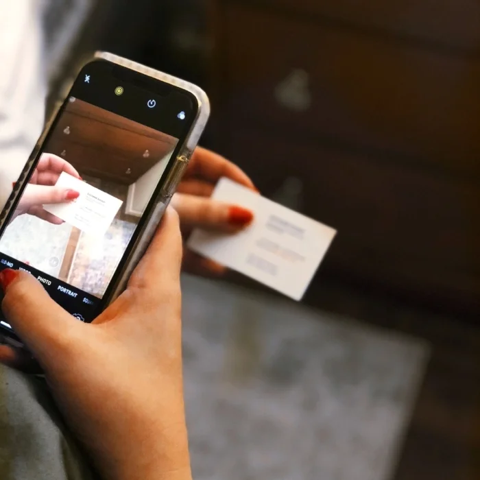 Take a Photo: The easiest app-less way to handle business cards is to take a picture and save it in a special business card folder on your phone so that you know where to find it when the time comes.